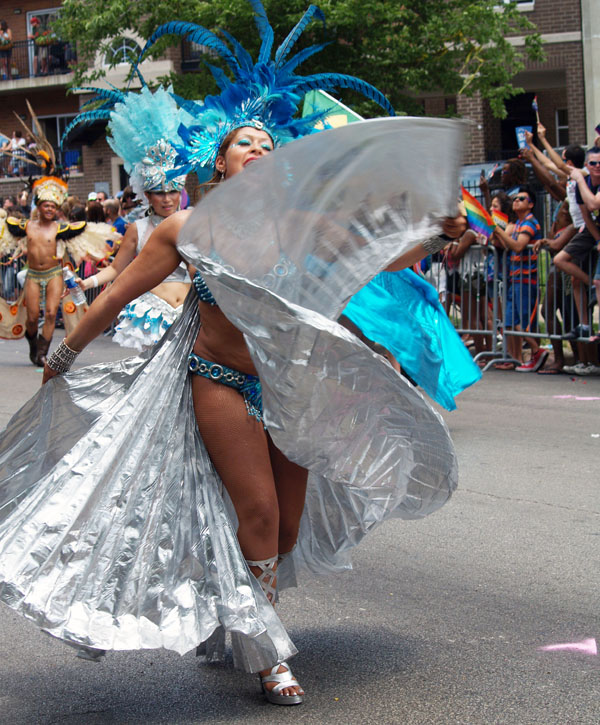 Bez względu na to, jaki mamy stosunek do tejże inaczej pojmującej związki partnerskie części ludzkiej populacji przyznać trzeba, iż pod tęczowymi sztandarami prezentują się nad wyraz barwnie. Od strony estetycznej otwarcie świętującym dzisiaj w Chicago reprezentantom ewidentnej mniejszości zarzucić nic nie można. Parada była szalenie efektowna i przebiegała w bardzo przyjaznej atmosferze. Miłość i tolerancja jakby stanowiły niewypowiedziane hasło przewodnie tego bardzo atrakcyjnego wizualnie przemarszu gejów i lesbijek. A atmosferę ich święta może częściowo odda Państwu poniższy fotoreportaż.