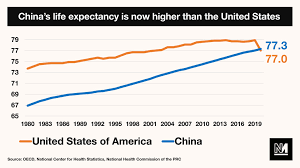 Choć na świeczniku od lat jest amerykańsko-chiński pojedynek w wolumenie produktu krajowego brutto, to w ubiegłym roku doszło do zmiany historycznej, która ma znaczenie bardziej fundamentalne niż bogactwo kraju, gdyż dotyczy ludzkiego życia. Oczekiwana długość życia w Chinach jest już wyższa niż w USA! W 2021 r. wyniosła ona w Państwie Środka 77,1 lat wobec 76,1 lat w USA. To porażka USA, która z pewnością w chińskim managemencie została szybko wychwycona. Gospodarka Państwa Środka funkcjonująca między przejawami państwa autorytarnego a modelem wolnorynkowym, swoim silnym wzrostem napędzała inne obszary, takie jak system opieki zdrowotnej. Chiny wydają się prowadzić zgoła inną politykę wobec COVID, aniżeli zachodni suwereni. Polityka zero-covid, choć pozbawia kraj dobrych wyników gospodarczych, które były znakiem rozpoznawczym azjatyckiego tygrysa, chroni życie ludzkie. Z estymacji Nature Medicine wynika, że rezygnacja z polityki zero-covid przy obecnym wskaźniku szczepień kosztowałaby kraj 1,5 miliona zgonów w całym kraju, na co Chiny pozwolić sobie nie mogą. Zresztą, to właśnie surowe restrykcje przeciwpandemiczne w 2020 r. i 2021 r. przyczyniły się do wzrostu (a nie spadku) oczekiwanej długości życia, co nie stało się w Europie Zachodniej i USA.