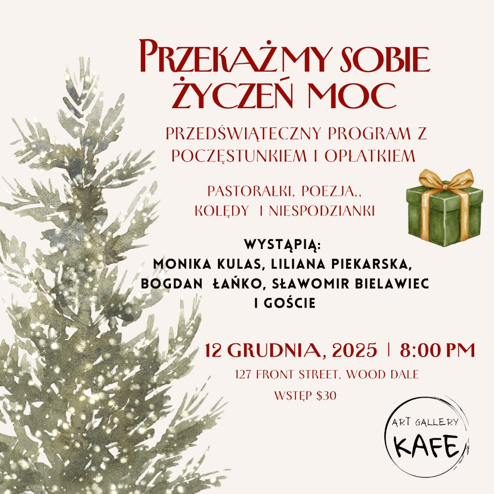 Przedświąteczny program z poczęstunkiem opłatkiem – pastorałki – kolędy – poezja i niespodzianki.